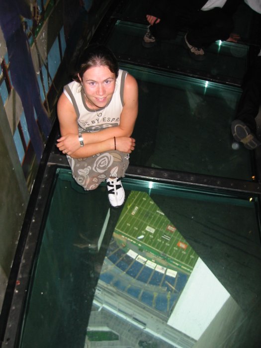 Das höchste freistehende Gebäude der Welt ist der CN Tower in Toronto, den wir natürlich dort auch besuchten. Simone hat sich dann auch auf den Glasboden in 350 Metern Höhe getraut, von dem man einen tollen direkt runter ins Skydome, einem riesigen Stadion hat. Die höchste (und auch noch offene) Aussichtsplattform der Welt lag dann noch mal fast 100 Meter höher. Die hatte dann allerdings keinen Glasfußboden mehr.