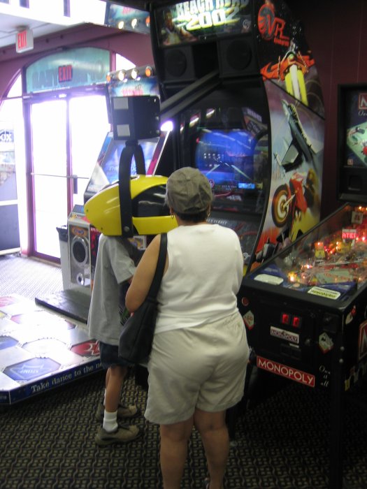 Das hier nur zur Doku, wie in der Arcade am Point Pleasant Beach eine Oma ihrem vielleicht neunjährigen Enkel am Maschinengewehr