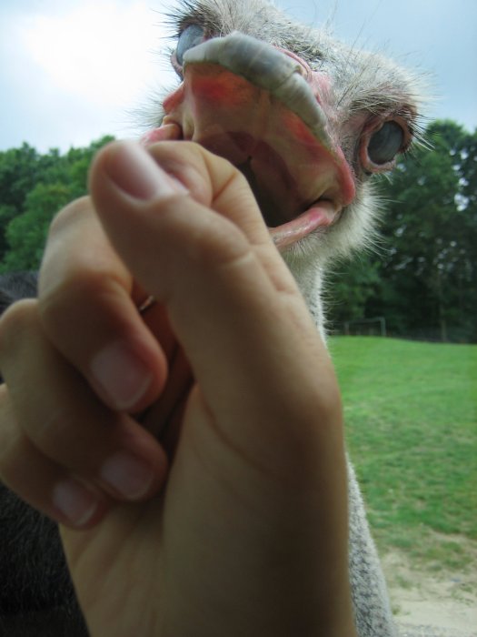 Simone musste sich ja unbedingt mit dem Strauß anlegen. Zum Glück war die Scheibe geschlossen. Sonst wären die Finger wohl ab