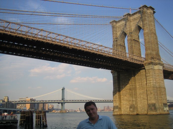 Der B-M-W Blick. Vorne die fantastische Brooklyn-Bridge, dahinter die nicht minder schöne Manhattan-, ganz hinten die
