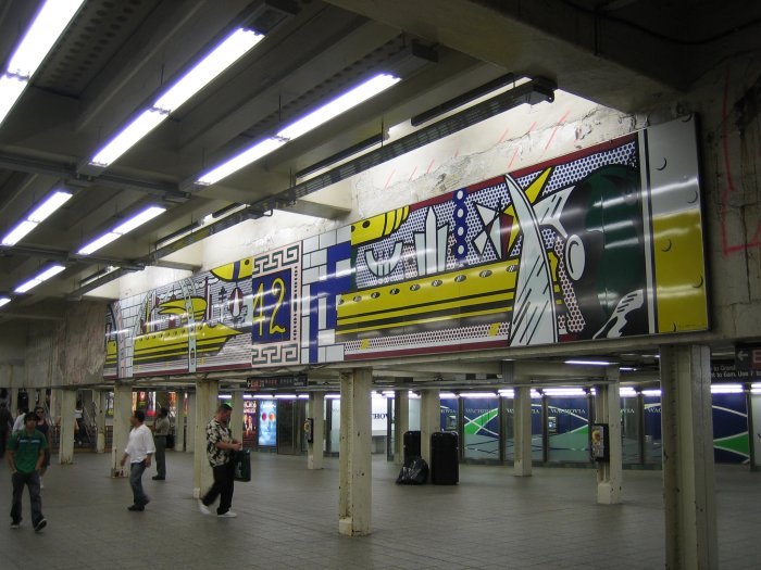 Kunst im Alltag. Lichtenstein verziert unterirdisch an der 42nd Street die Subway-Station. Ein Geschenk an seine Heimatstadt.