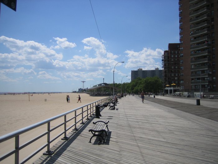 Coney Island, der Beach von New York. Im Hintergrund das Wahrzeichen von Astroland, dem kleinen Vergnügungspark, der gerade seinen