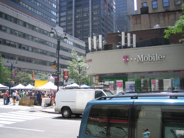 Mobilfunkversorgung in Manhattan. Da will man wohl den Tunneleffekt der Straßenschluchten nutzen. Nebenbei sieht man eine