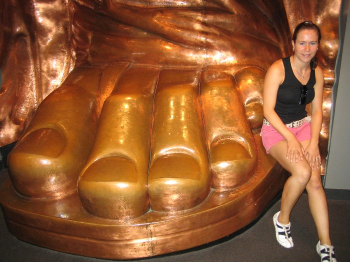 Nur um sich die Dimension der Statue of Liberty mal vorstellen zu können. Simone sitzt hier auf einem Originalmodell