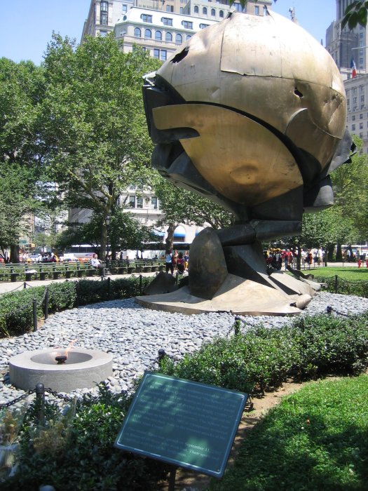 Eine Skulptur, die einst das World Trade Center zierte. Heute steht sie als Denkmal für die Gestorbenen vom 11. September 2001