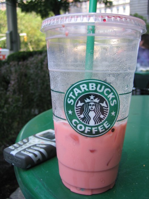 Das ist Kaffee - kalt und mit Himbeergeschmack. Schmeckt besser, als es klingen mag.