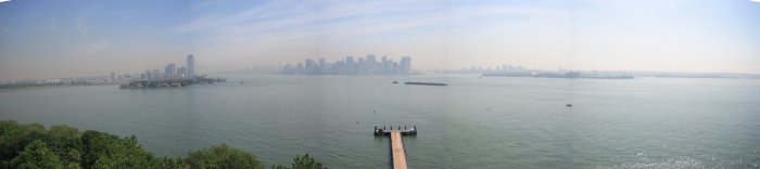 Zum Abschluss noch der Blick von der Statue of Liberty auf von links New Jersey, Manhattan und Brooklyn.