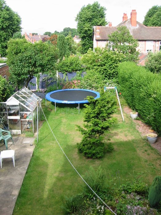 Aus unserem Schlafzimmerfenster kann man hier das Riesentrampolin von Tochter Amy sehen.